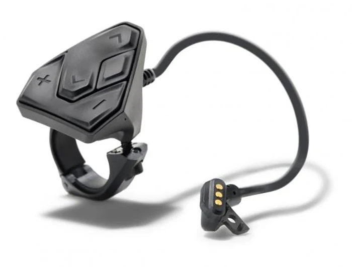 L’unité de commande Bosch pour Kiox Compact est fixée au guidon du vélo électrique et permet de commander séparément l’ordinateur de bord.