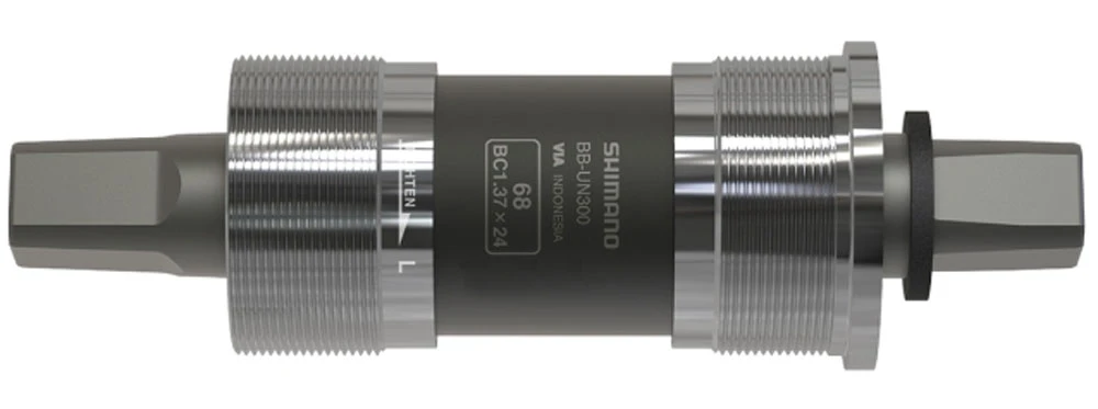 Boîtier de pédalier Shimano BB-UN300 à 4 faces pour manivelles avec fixation JIS à 4 faces. Convient aux cadres avec un filetage BSA et une largeur de boîtier de 68 mm.